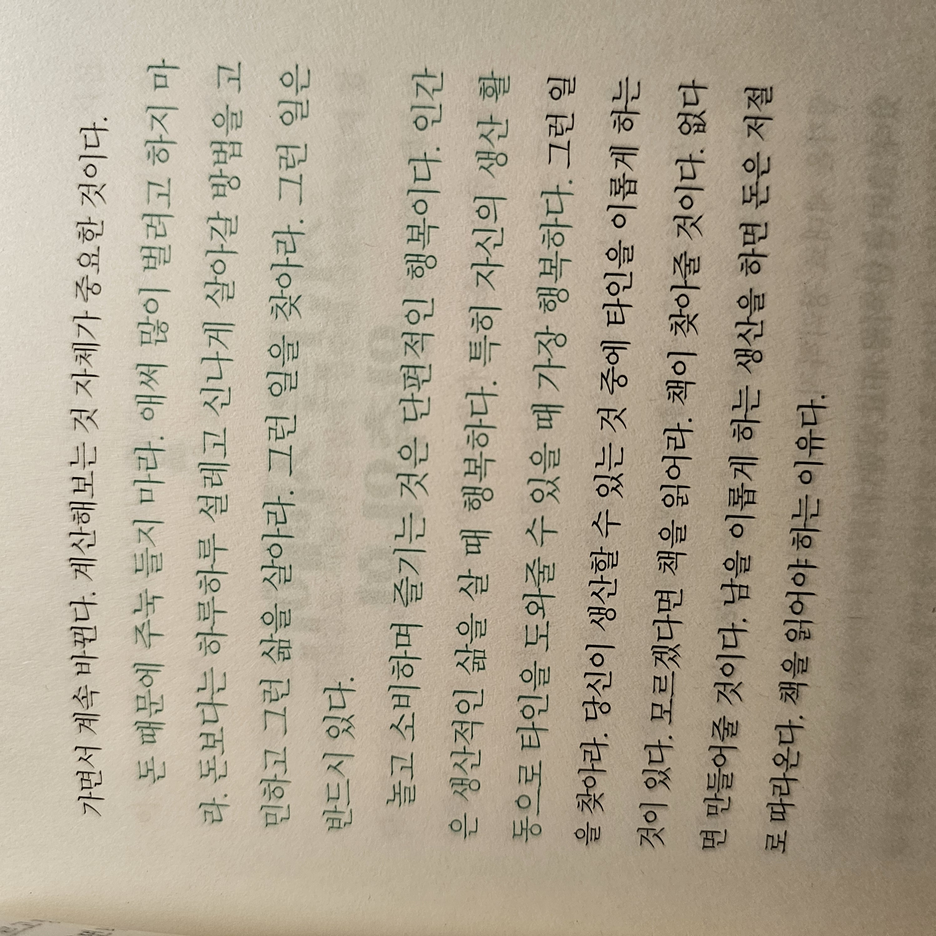 책에서는 애써서 많이 벌려고 하지 마라, 돈보다 하루가 설레는 방법을 고민해라고 말한다.